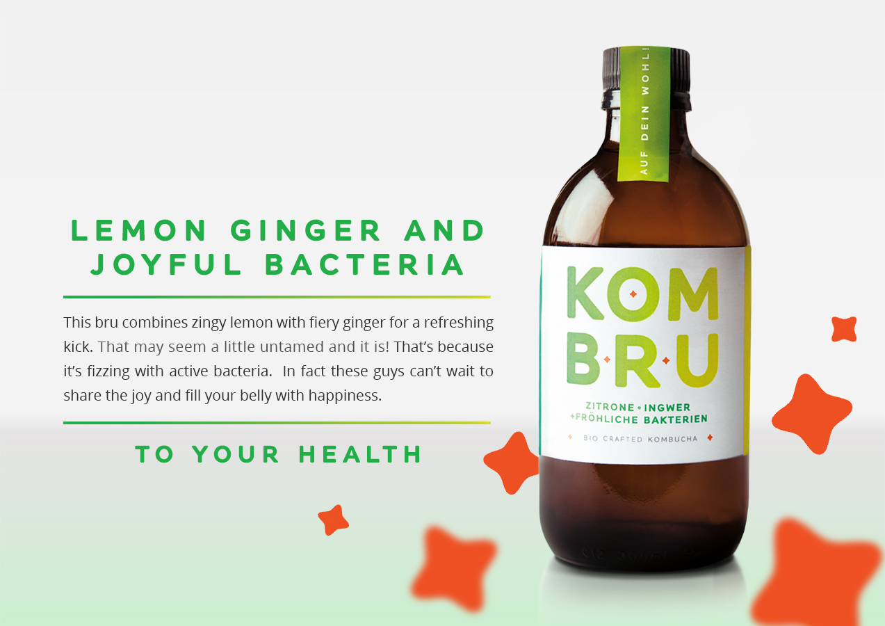 Most fizzy drinks are filled with sugar and e-numbered bad stuff. Kombru, a kombucha sold in supermarkets across Hamburg, offered a refreshingly healthier alternative. I was co-founder of Kombru and responsible for the naming of the brand, tonality of the texts and played an integral role in the brand design. I even took the German tradition of raising a glass to people's health and transformed it into the brand's claim. Cheers!